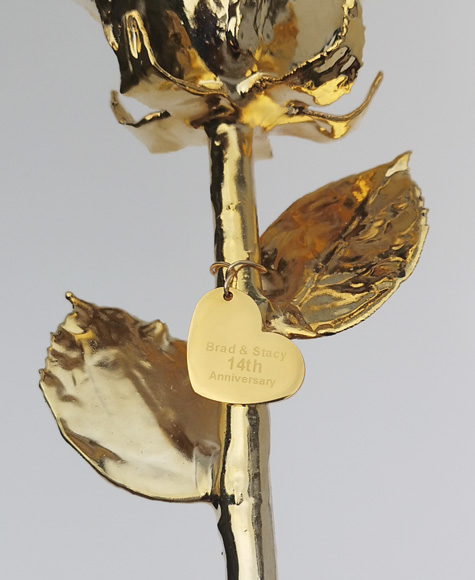 Engraved message on dime size gold plated or stainless steel tag on stem $25